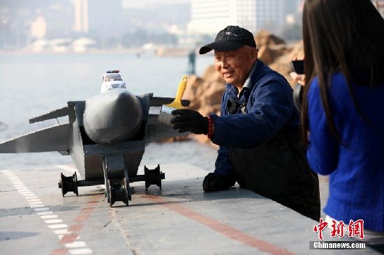 青岛老人自造缩微“航母”成功试水