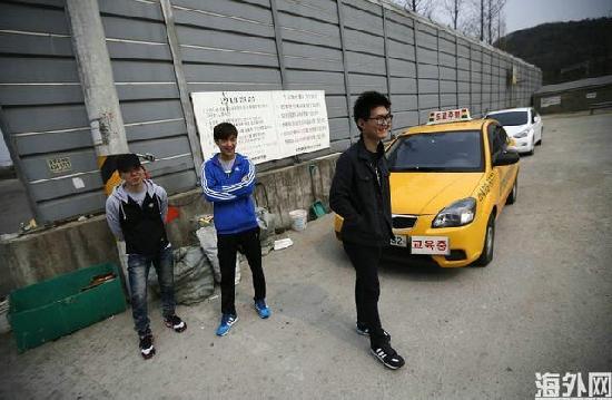 当地时间2014年3月27日,韩国始兴,中国考驾照的游客在驾校内抽烟休息。