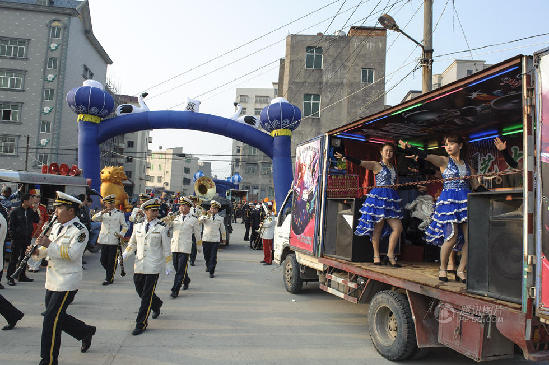 福建省长乐市一家人举办的出殡仪式上,乐队和舞蹈队同场演出。据村民介绍,这场丧事花费至少上百万元(4月5日摄)。