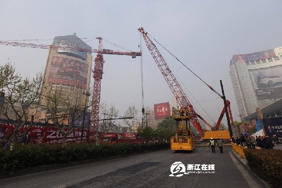杭州市中心武林广场塔吊倒塌 已致一人死亡
