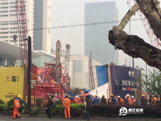 杭州市中心武林广场塔吊倒塌 已致一人死亡