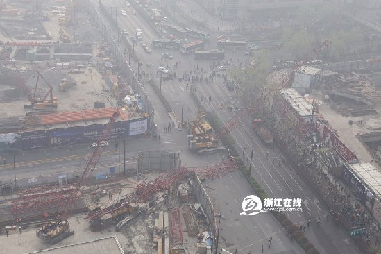 杭州市中心武林广场塔吊倒塌 已致一人死亡