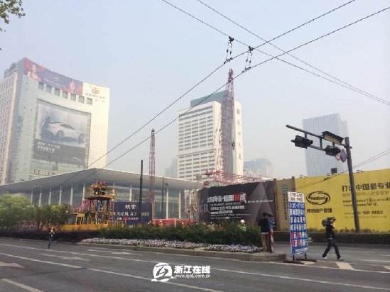 杭州市中心武林广场塔吊倒塌 已致一人死亡
