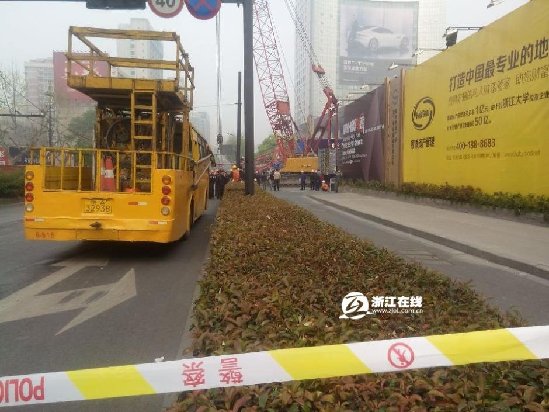 杭州市中心武林广场塔吊倒塌 已致一人死亡