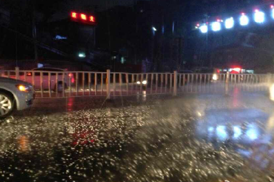 4月14日晚上七点三十分,甘肃省兰州市,晚间十分兰州市突降冰雹实数罕见,瞬时间地上被白色的冰雹覆盖,每颗冰雹有大豆之大。