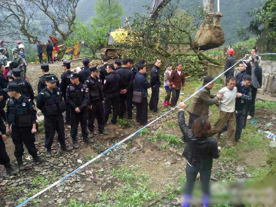 4月13日,四川省泸州市古蔺县箭竹乡乐园村,政府出动大批特警、民兵强挖百年古树,打伤包括13岁学生在内的数十名村民。