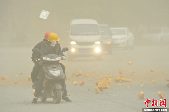 4月23日,受强冷空气影响,新疆哈密出现出现强沙尘和降温天气,部分路段能见度不足50米,最低气温将降至零度以下。此次天气过程对当地群众生产生活造成一定影响。中新社发 李华 摄 图片来源:CNSPHOTO