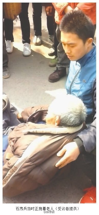距此10多天前,纳溪上马镇街口,唐安云咚一声倒下。也就在唐安云倒地的四五米远处,20岁的石茂兵停下摩托车,转而搀扶老人。当晚,老人抢救无效过世。
