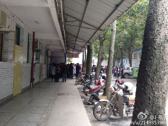 图为人们聚在医院外。