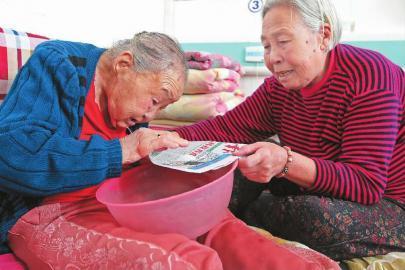 老人现在耳不聋、眼不花,平日里娘俩经常玩“小牌”打发时间。最近几天因为感冒,老人才不玩牌了,吃饭也得靠人喂了。