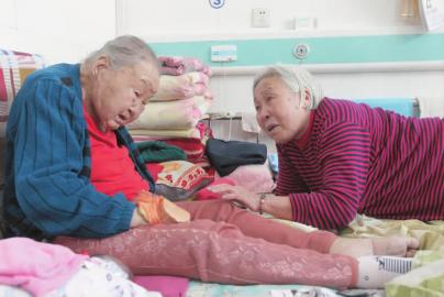 110岁的王高氏(左)和86岁的女儿王淑霞在医院里生活