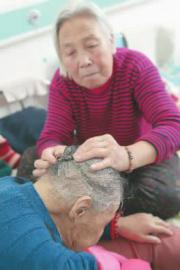 给老妈妈挽个发髻本组图片 记者李洪亮摄