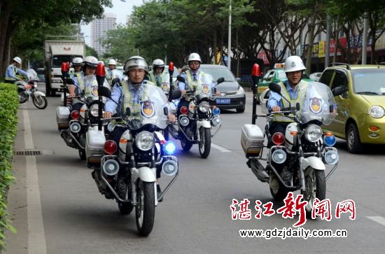 交警赤坎大队勤务一、二中队在采取警用摩托车路面巡逻监控的基础上,再由机动巡逻中队组建8辆警用摩托车的专业巡逻小组,每小组分两个巡逻班,从早上7时到晚上22时,采取正常班和时间差无缝衔接交替巡逻模式,在赤坎辖区进行中山一路、人民大道、椹川大道等路段进行固定路线巡逻防控。充分发挥摩托车机动灵活,反应迅速的特点,接到警情后,从路面直接出警,第一时间赶赴现场,大大提高了出警效率,避免了交通事故等突发事件发生后造成道路交通堵塞。