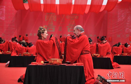 重庆酉阳桃花源举行首届传统汉服集体婚典