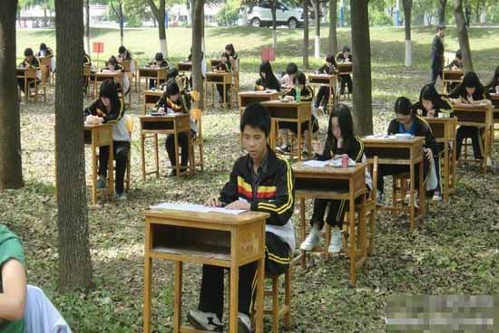 湖北一学校为防作弊将考场搬进树林
