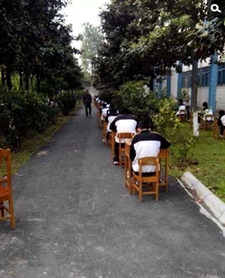 湖北一学校为防作弊将考场搬进树林