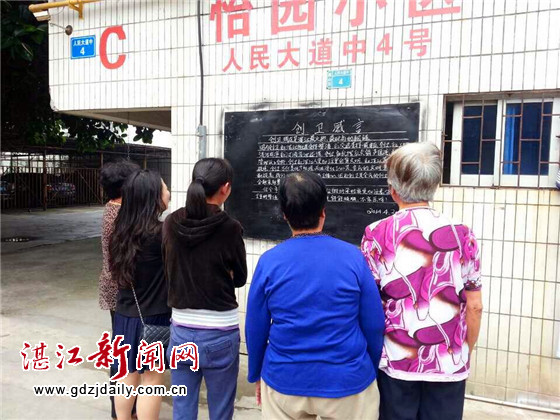 据了解,小黑板上的感言是怡园小区的黎伯写的。今年74岁的黎日朝,是一名退休老干部。他告诉记者,从创卫开始,他亲身感受着小区发生的点点滴滴变化,看到越来越干净整洁的湛江,他感到由衷的欣慰。