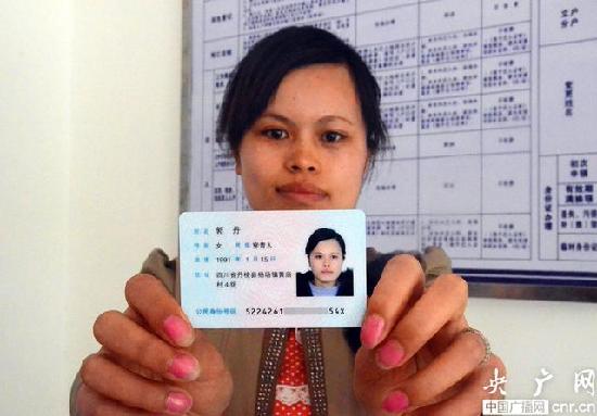 2014年05月07日,四川省眉山市,丹棱县杨场派出所民警将盖好章的户口簿及身份证发放给郭丹。日前,贵州纳雍县沙包乡大寨村居民郭丹与四川眉山丹棱县杨场镇黄庙村居民罗超结婚,准备落户夫家。3月21日,杨场派出所户籍民警却被难住了:郭丹持有的《户口迁移证》和《居民身份证》显示民族为“穿青人”,可是民警在《常住人口管理信息系统》中找遍了所有民族选项,却没有“穿青人”。