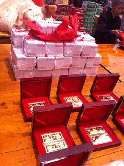 浙江台州婚礼现288万现钞 金条十几根