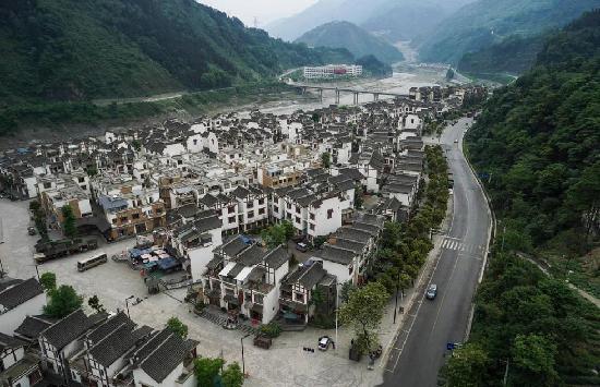 俯瞰汶川县映秀镇一角(5月7日摄)。