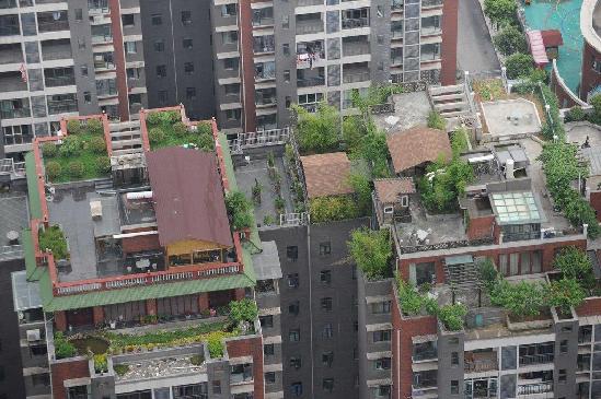 2014年5月14日,贵阳市云岩区东面许多楼房最近都被加了“铁皮帽子”。这些密集的楼房中,大多数是七八层楼,看不出规划与秩序,这些密密麻麻的楼房最高一层用板房的铁皮盖着,从高处望去成了城市上空的棚户区。呈文 摄 图片来源:CFP视觉中国