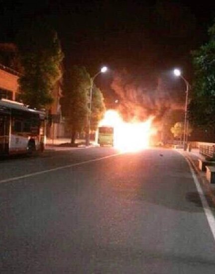 图为法拉利与出租车相撞后起火燃烧。