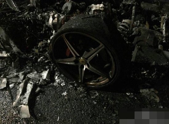 被烧成空架子的法拉利。