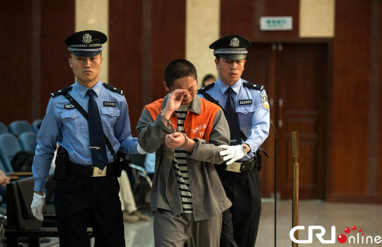 图为被告张国领在法官宣判他四年刑期后,哭着被带出法庭。