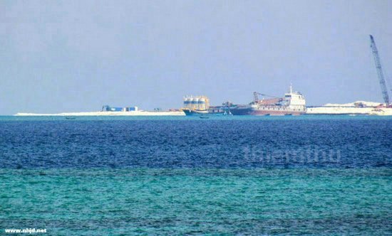 资料图:中国船队在南沙赤瓜礁进行大规模填海。