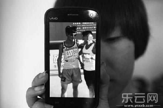 在冯秋实的手机内,还留有两张以2014年昆明高原国际半程马拉松赛宣传牌为背景的照片,合影者一张为国内选手,另外一张则是国外选手。