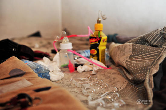 犯罪嫌疑人用奶瓶作的用于吸毒的“冰壶”。