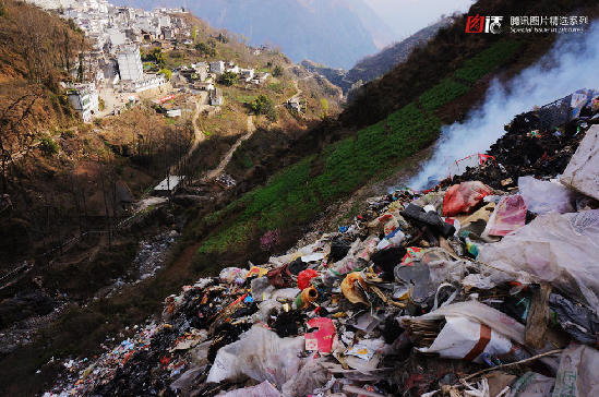 云南昭通巧家县茂租乡,金沙江边的垃圾场。