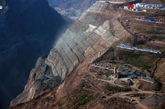 正在施工建设的世界最高大坝和世界第二大水电站—金沙江白鹤滩水电站坝肩护坡建设工地,该电站建成后将在金沙江峡谷中形成200多亿立方米的水库。而电站位于云南省巧家县与四川省宁南县交界处,是小江断裂、则木河断裂、莲峰断裂三大断裂交汇部位,地质构造十分复杂,历史地震活动频繁。