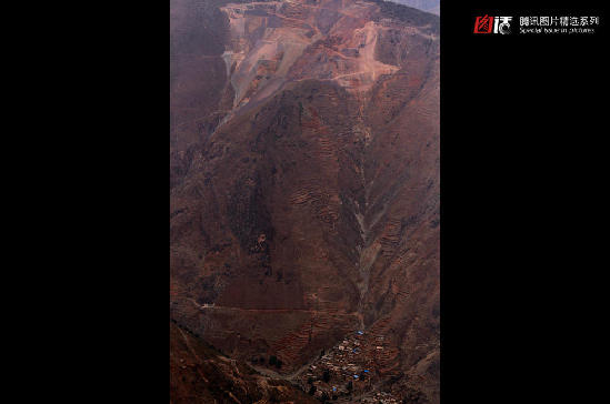 金沙江边采矿场下的村庄,一旦发生地质灾害,这些村庄将不复存在。