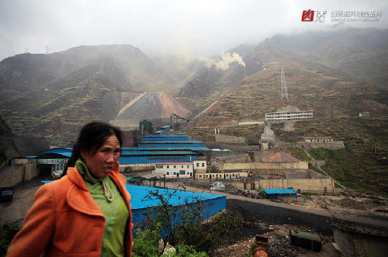 因民矿区刺鼻的冶炼烟雾弥漫山谷。
