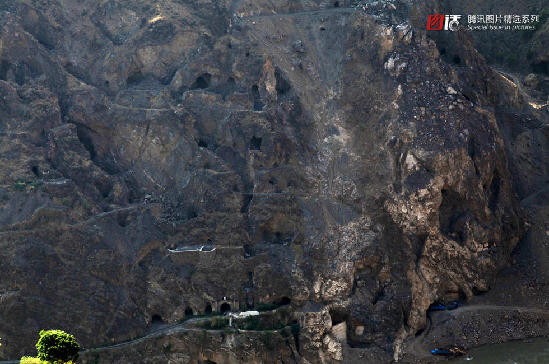 金沙江边如蜂巢一样的采矿洞,绿色植被荡然无存。
