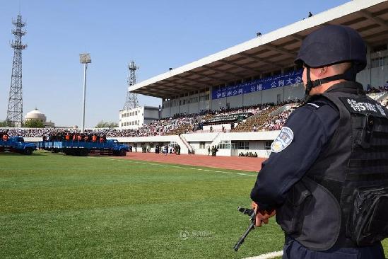 新疆伊犁公判公捕公拘大会 集中宣判55人