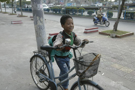 朱阿婆生活拮据,虽然有着种种的顾虑与困难,可是最后,朱阿婆一家人毅然决定:“无论如何留下宝宝,照顾他,宝贝他,抚养他长大成人!”图为2007年11月8日拍摄的“黑小囡”朱军龙。