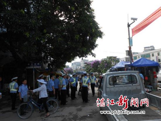 交警联合城监等职能部门对廉江城区主干道路及考场周边道路开展交通秩序整治