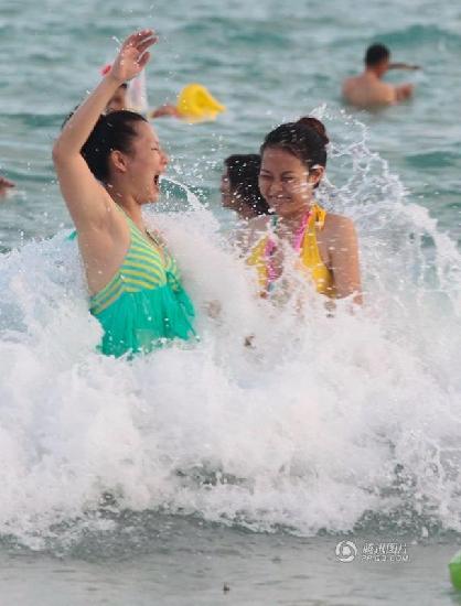 2014年6月2日,海南省三亚市,端午节当天,上万名市民及游客踊到大东海洗龙水,热热闹闹过端午节。