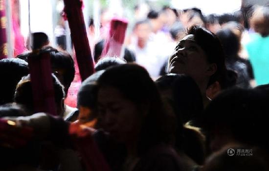 墙内,是高考学子无可松懈的青春,墙外,是陪读家长无处安放的神经。在信仰的天平上,他们都在这一段人生的特殊时期里找到了各自的平衡。图为一名无法靠近“神树”的母亲抬头望着“神树”的方向就地祈祷。 王伟 摄