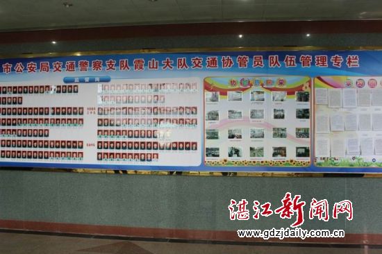 湛江新闻网讯:为进一步规范协勤人员管理工作,交警霞山大队利用大队二楼办公场所设置协勤人员管理专栏,通过公示协勤人员队伍简介、监督岗和展示协管员风采、学习园地等内容,逐步完善协勤人员文化建设阵地。