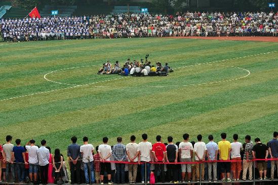 “注意不要闭眼!我喊到即扫到!教育、社会、信技、数统、马院……”摄影师拿着大喇叭喊话,两台环摄照相机360度扫描拍摄,1分钟后,定格了4500余名师生笑容的“最牛毕业照”出炉。