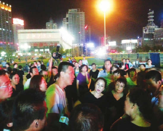 据兰州晚报6月5日报道,中、高考临近,广场舞也让很多备考的考生们无法集中精力复习,6月3日晚,东方红广场城管执法人员对东方红广场舞大妈进行劝解和执法,却遭到了广场舞大妈大叔们的围攻。在喷泉对面,城管与跳舞市民发生了激烈的冲突。100多人围住城管,一位老大爷情绪激动地说,“广场就是跳舞的,凭什么收走音响。城管不管别的,管这些干嘛!”说着这位老大爷还要动手打人,还好被旁人拦了下来。图为现场。