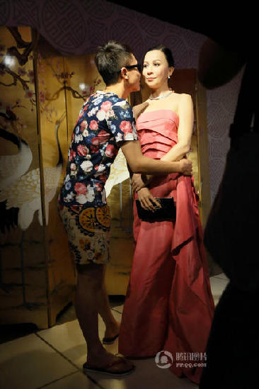 游客亲吻刘嘉玲的蜡像。