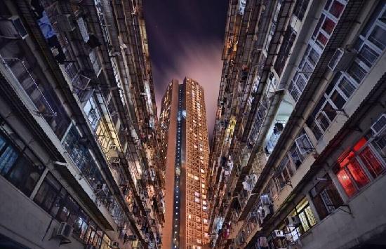 法国摄影师仰拍香港摩天大楼 令人晕眩