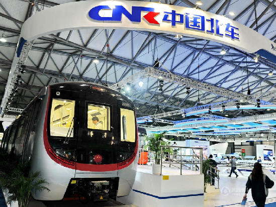 6月17日,在2014中国国际轨道交通展现场,中国北车长客造国内首列“无人驾驶”地铁列车亮相。新华社记者 张楠 摄
