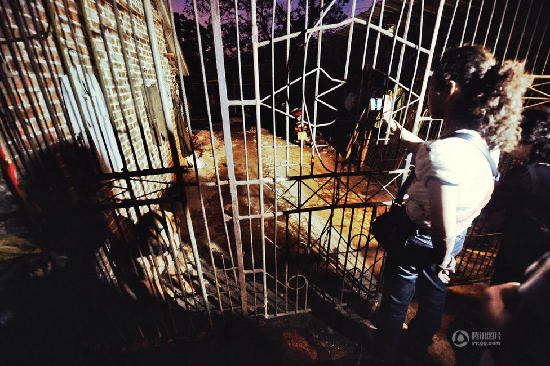 这周六,就是玉林狗肉节的正日子了。6月18日凌晨5点50分,8名自称“食品监督员”的民间团体驱车来到位于玉林市北二环与民主路的交叉路口,发现一个木料加工厂里面是一个屠宰点。和他们一起来的还有一群媒体记者,他们从门缝里看到里面有宰杀好的十几条狗,并且加工厂里的人正在宰杀狗。图为玉林一家狗肉屠宰场正在工作。(本组摄影:法制晚报 刘畅)