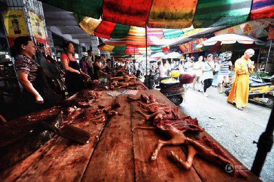 探访广西玉林狗肉屠宰场 动保人士与肉贩对峙