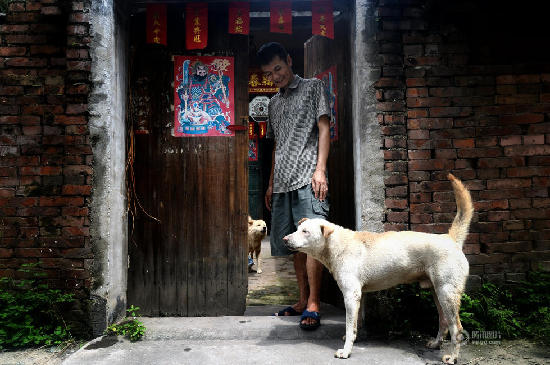 临近屠宰场的一户人家养了两只狗,都圈在家里。